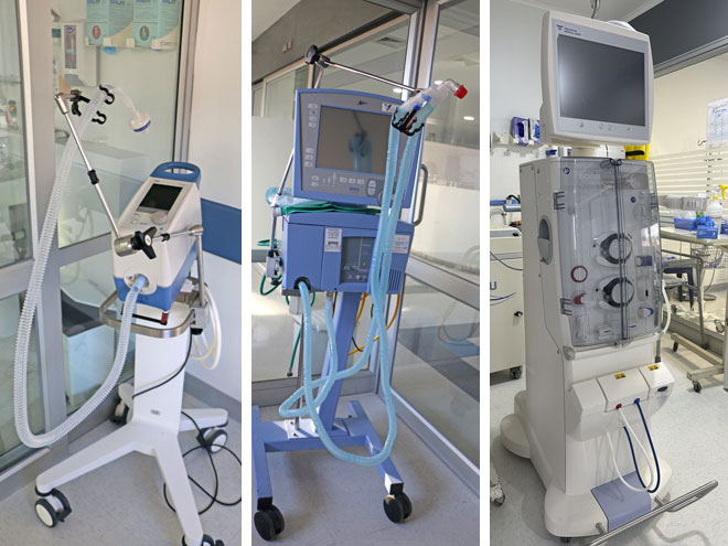 Contamos además con equipamiento para realizar hemodiálisis, lo que nos permite recibir pacientes con necesidad de terapia de reemplazo renal agudo.